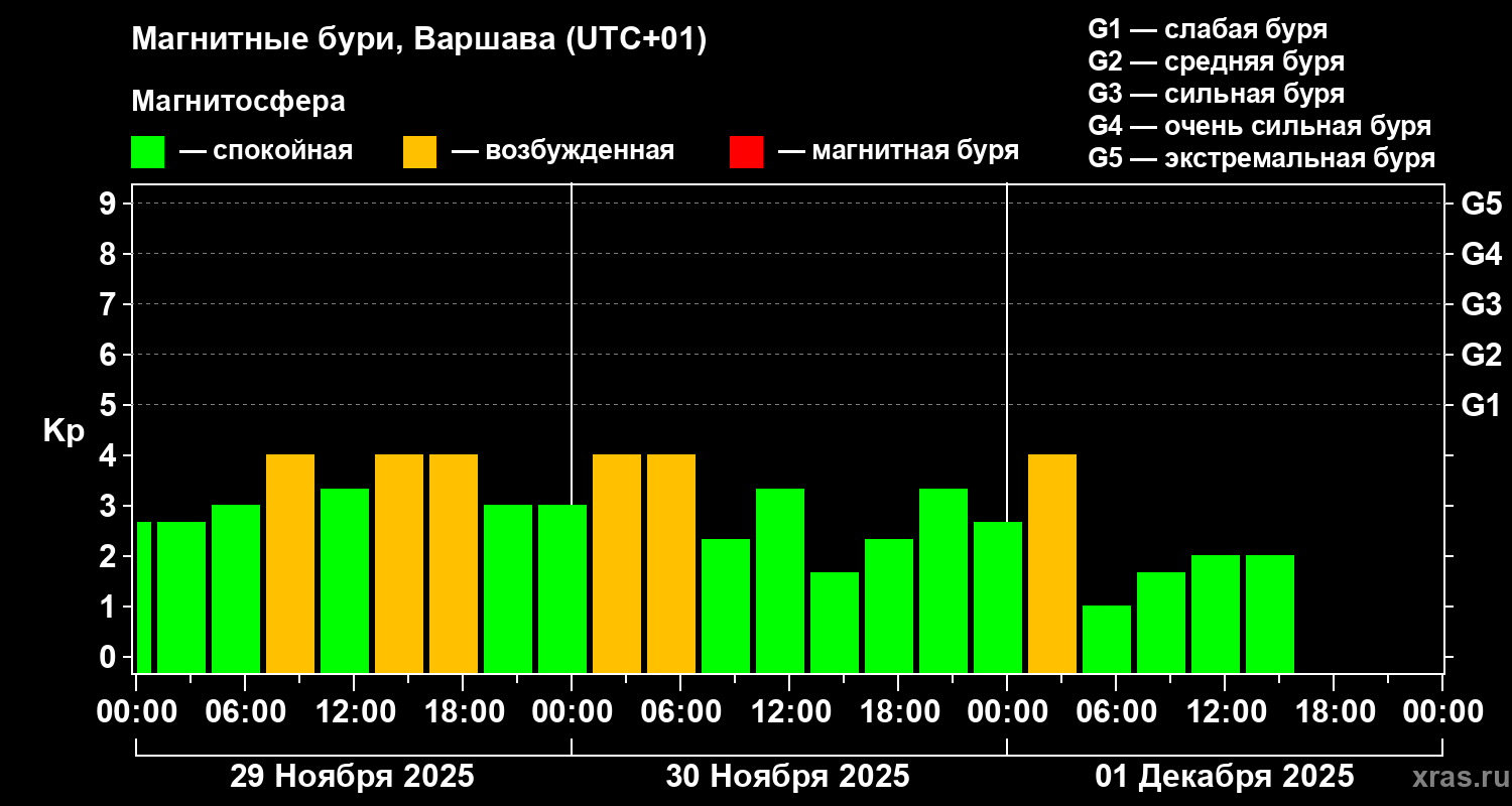 Магнитные бури в Варшаве — 1 декабря 2025 года
