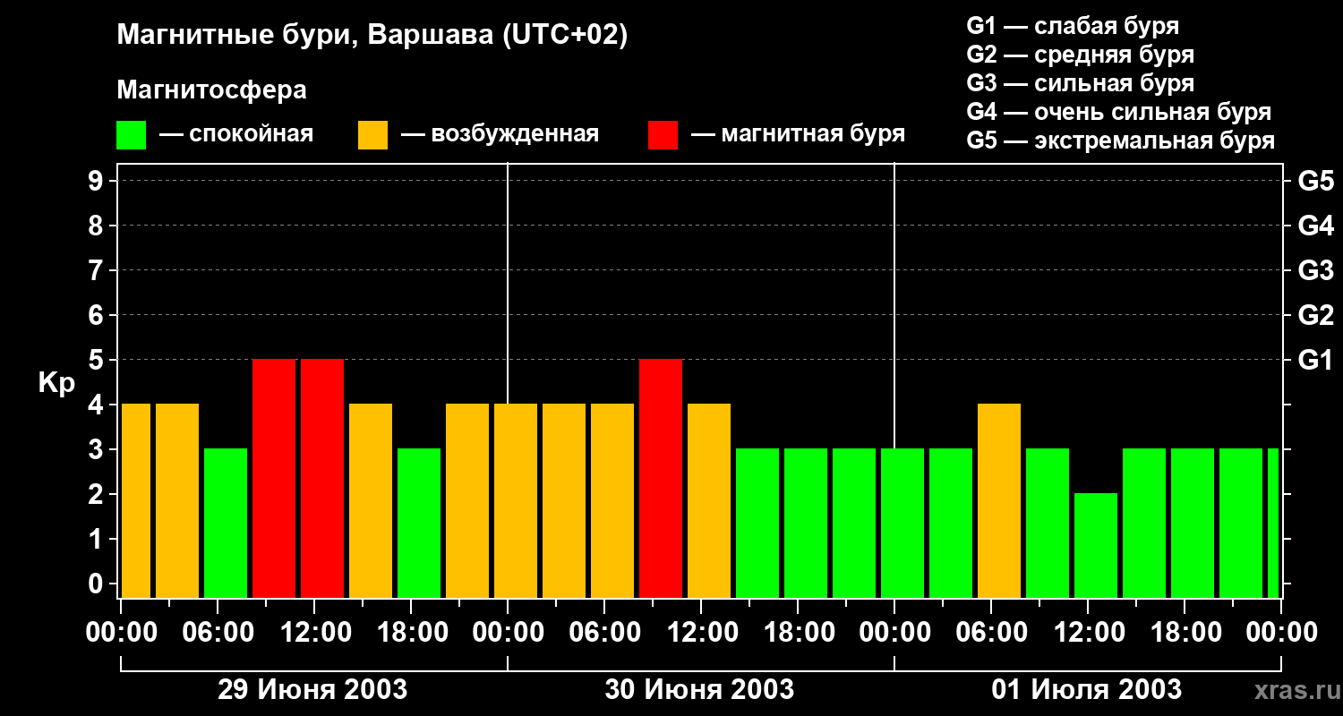 Магнитные бури в Варшаве — 1 июля 2003 года