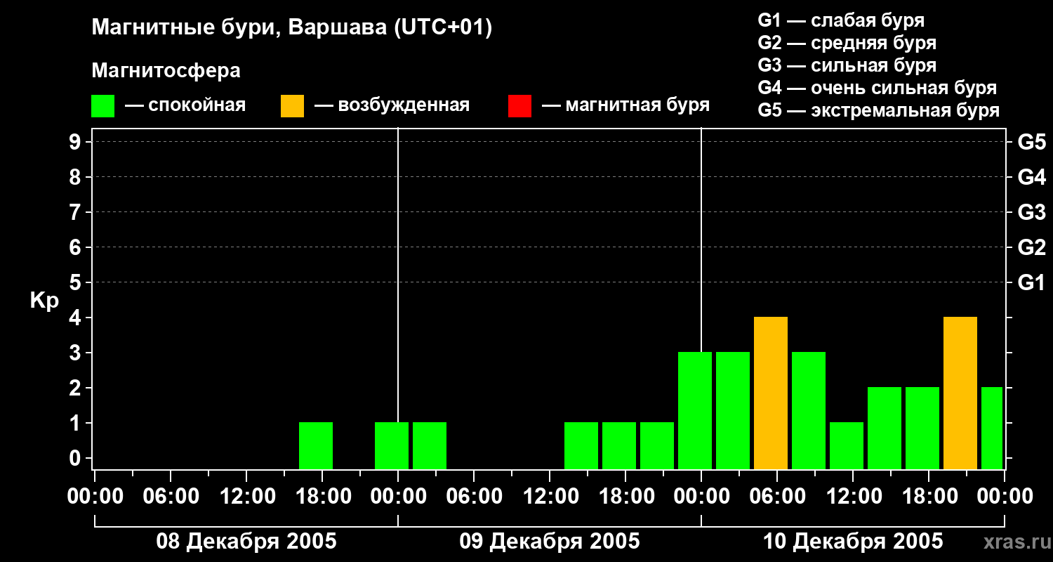 Магнитные бури в Варшаве — 10 декабря 2005 года