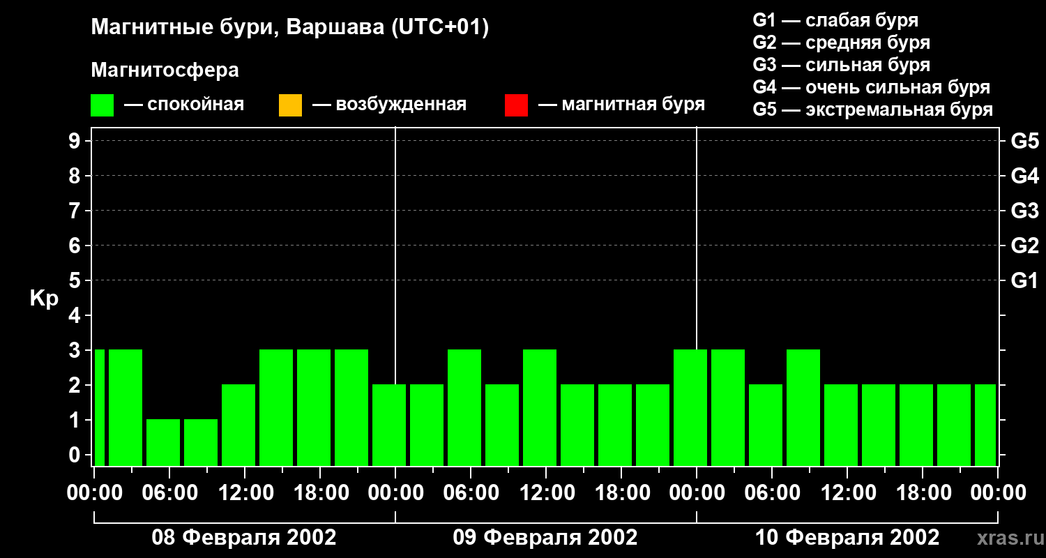Магнитные бури в Варшаве — 10 февраля 2002 года