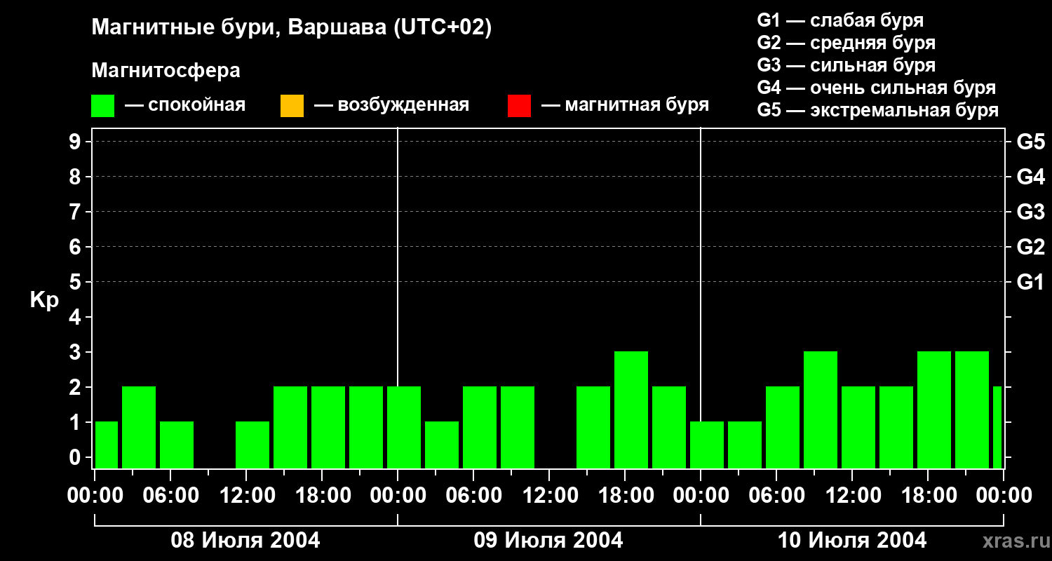 Магнитные бури в Варшаве — 10 июля 2004 года