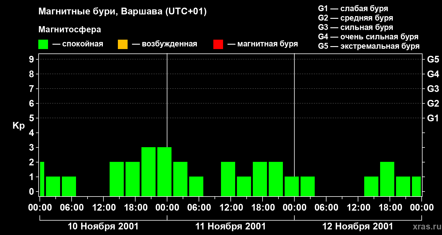 Магнитные бури в Варшаве — 12 ноября 2001 года