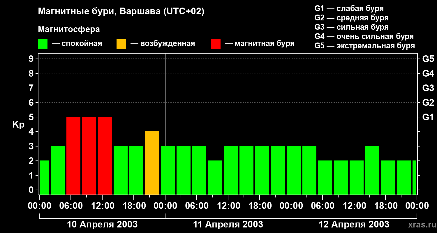 Магнитные бури в Варшаве — 12 апреля 2003 года