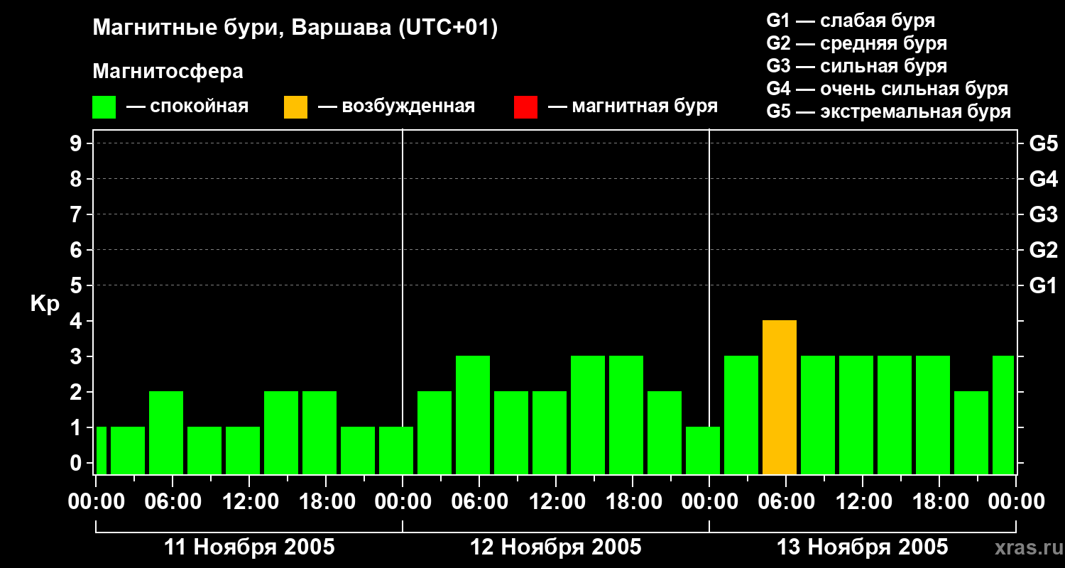 Магнитные бури в Варшаве — 13 ноября 2005 года