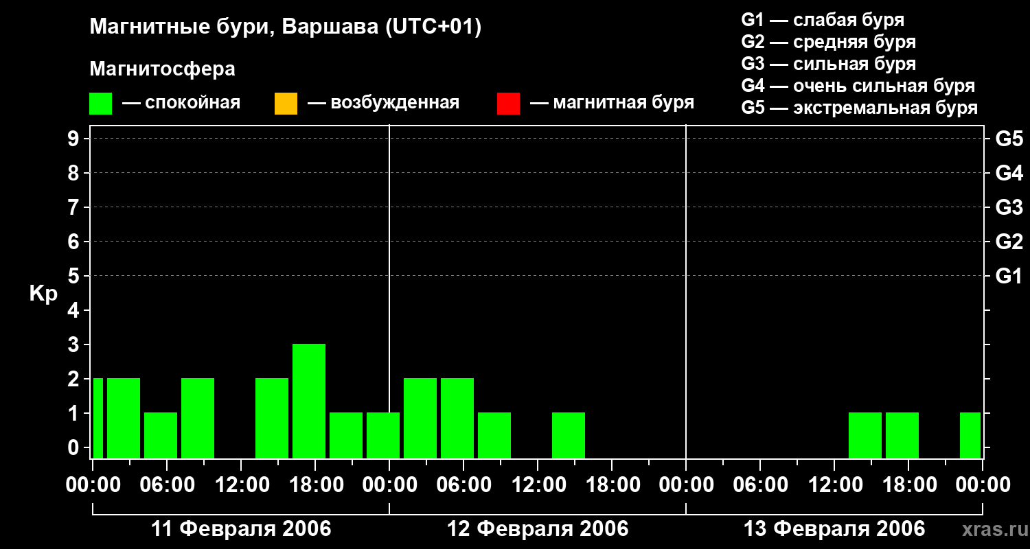 Магнитные бури в Варшаве — 13 февраля 2006 года