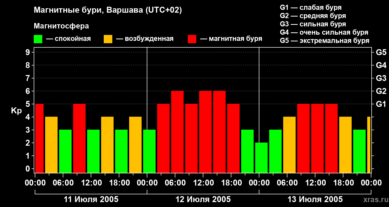 Магнитные бури в Варшаве — 13 июля 2005 года