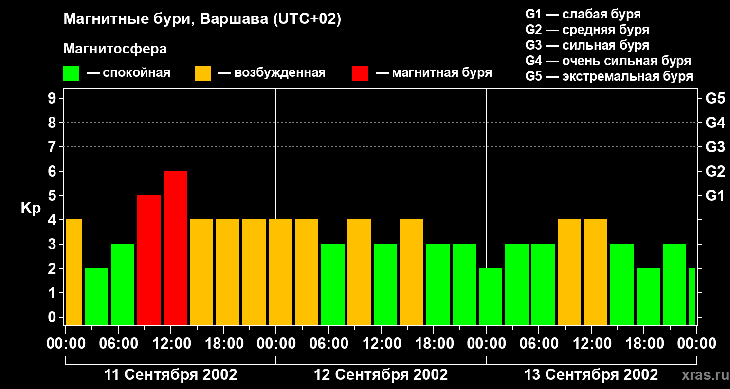 Магнитные бури в Варшаве — 13 сентября 2002 года