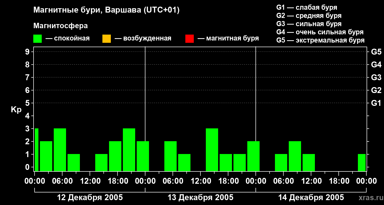Магнитные бури в Варшаве — 14 декабря 2005 года