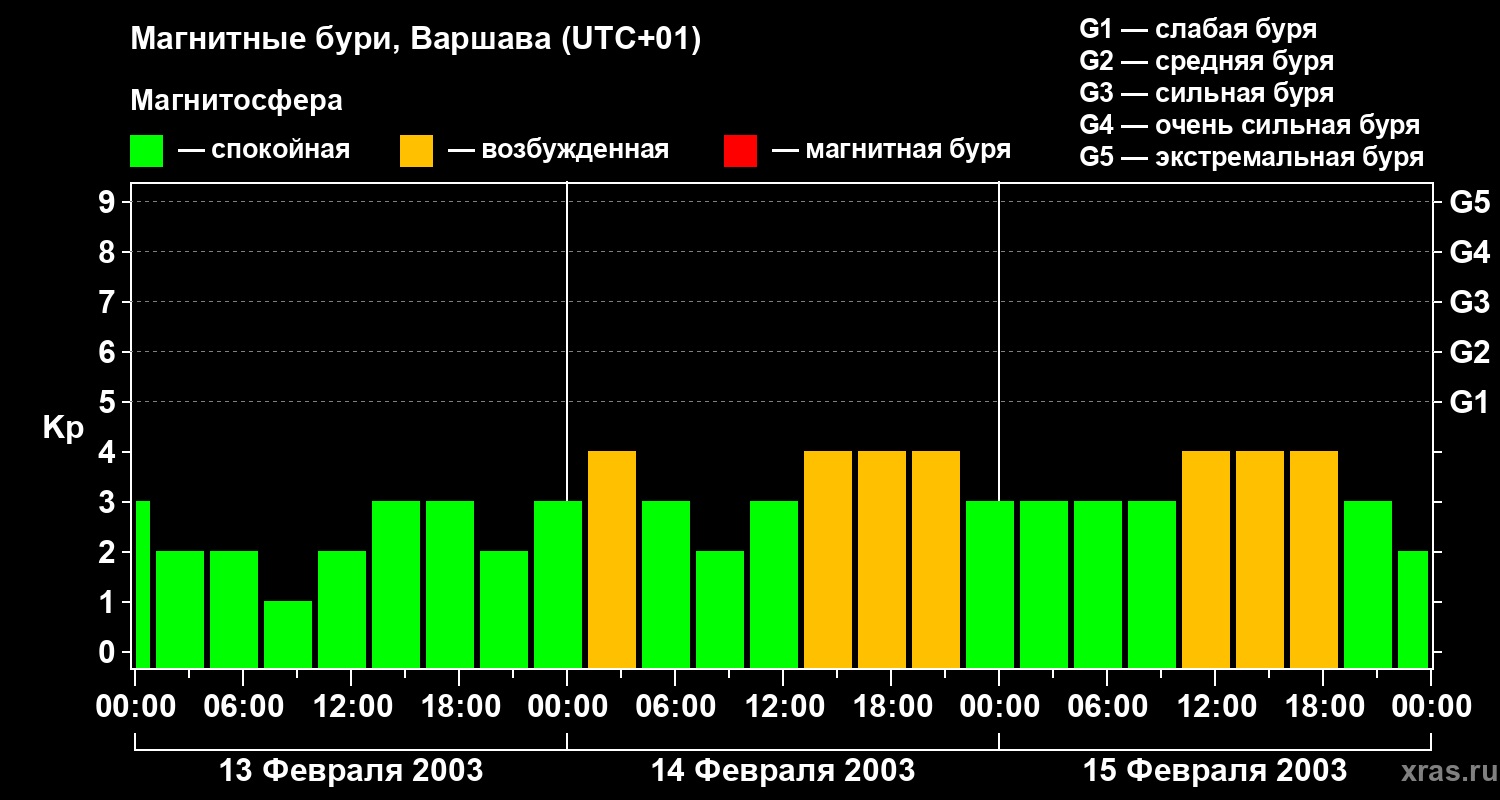 Магнитные бури в Варшаве — 15 февраля 2003 года
