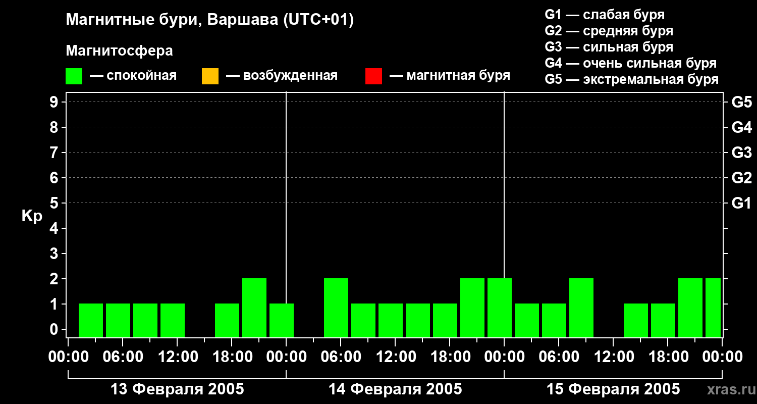 Магнитные бури в Варшаве — 15 февраля 2005 года