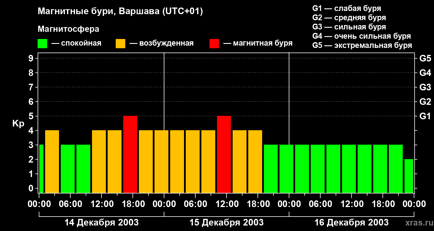 Магнитные бури в Варшаве — 16 декабря 2003 года