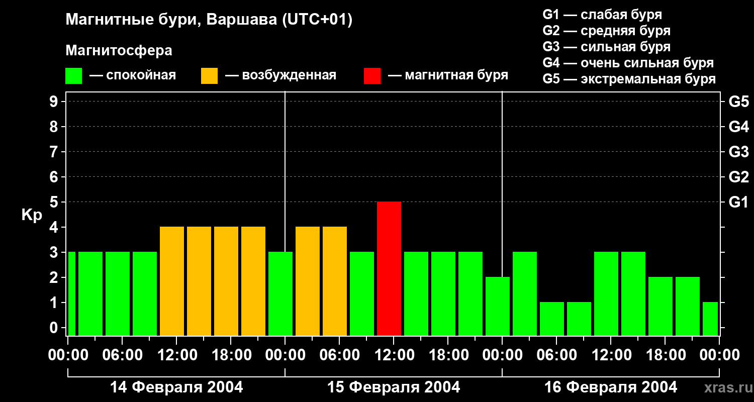 Магнитные бури в Варшаве — 16 февраля 2004 года