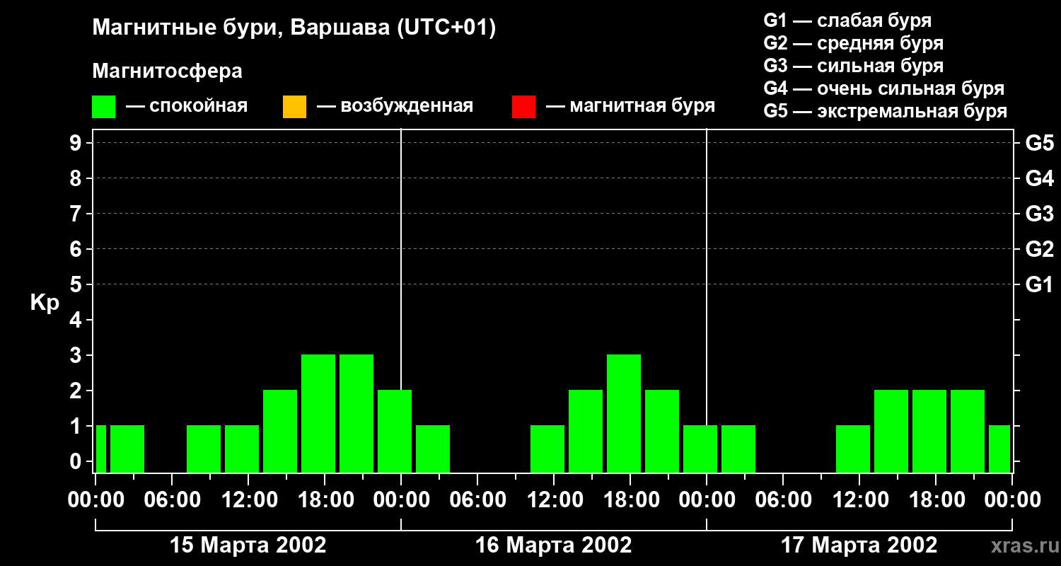 Магнитные бури в Варшаве — 17 марта 2002 года