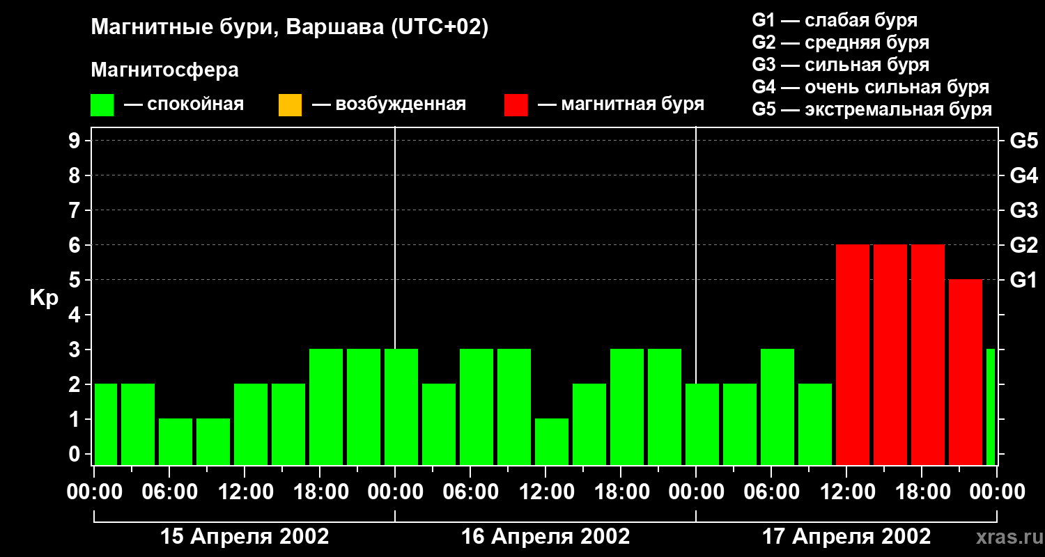 Магнитные бури в Варшаве — 17 апреля 2002 года