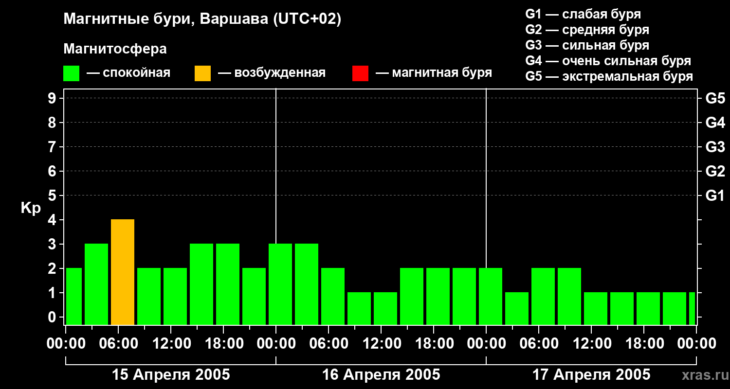 Магнитные бури в Варшаве — 17 апреля 2005 года