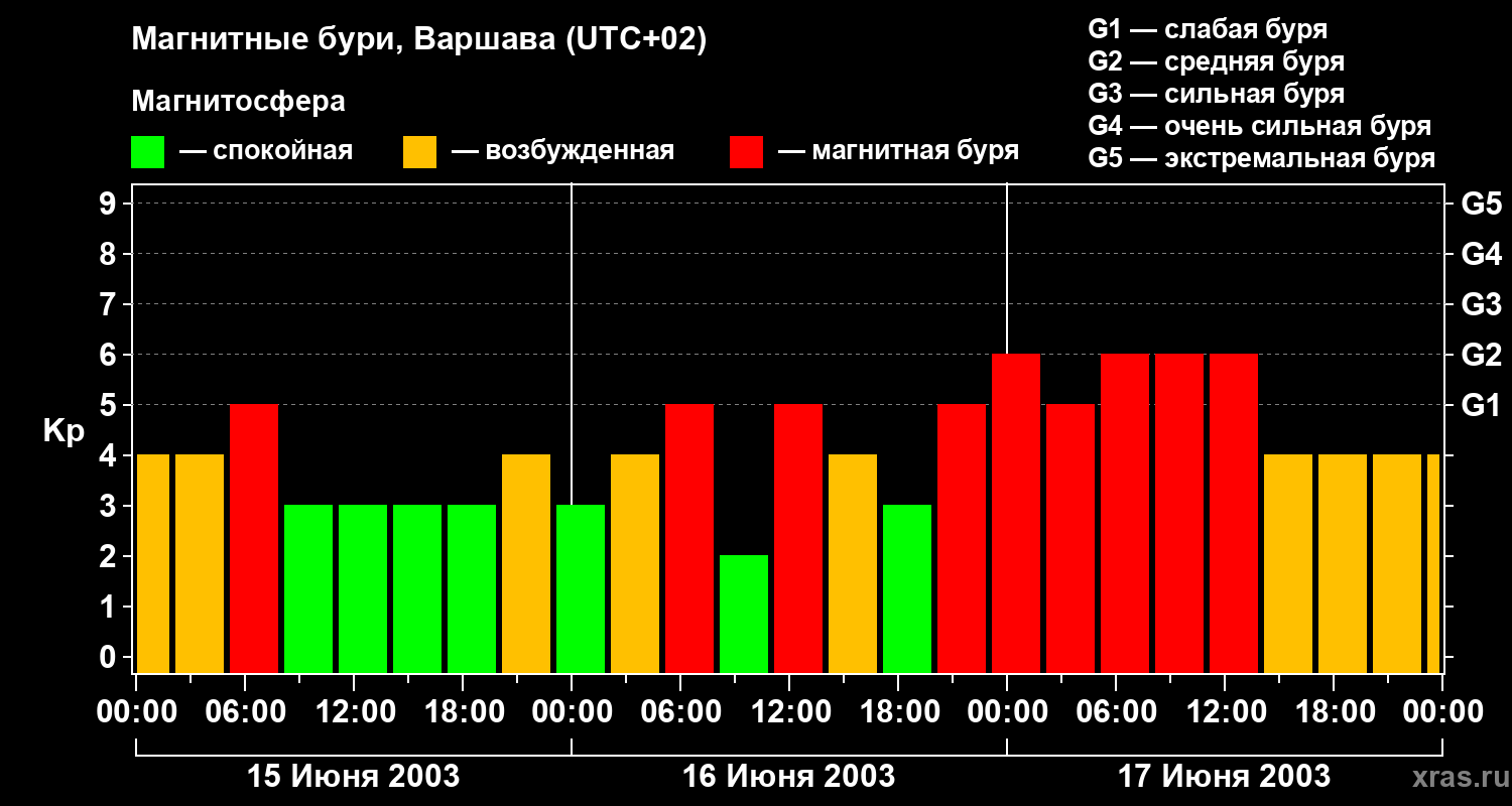 Магнитные бури в Варшаве — 17 июня 2003 года