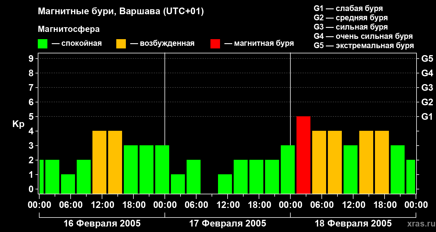 Магнитные бури в Варшаве — 18 февраля 2005 года