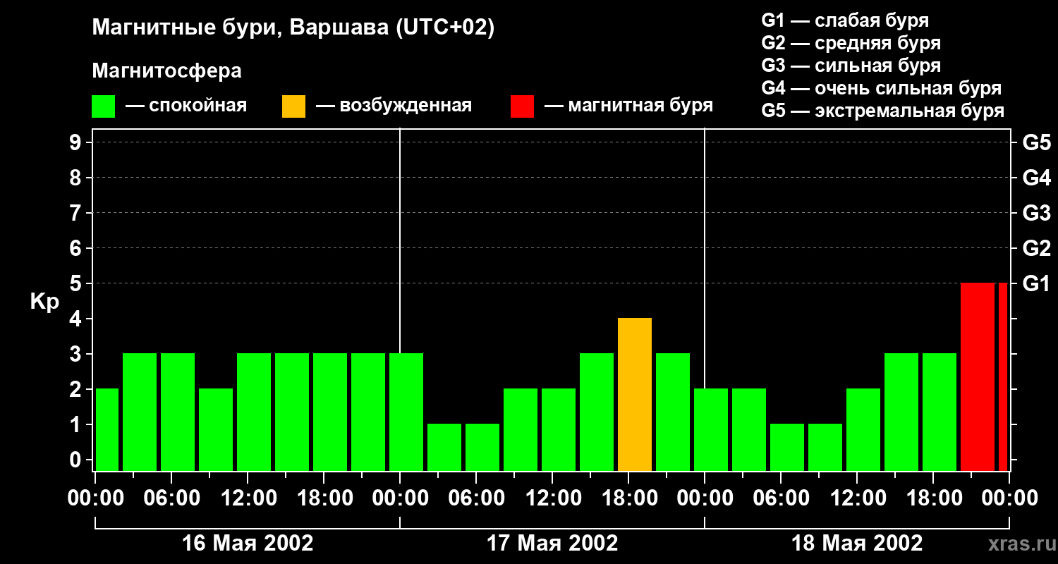Магнитные бури в Варшаве — 18 мая 2002 года