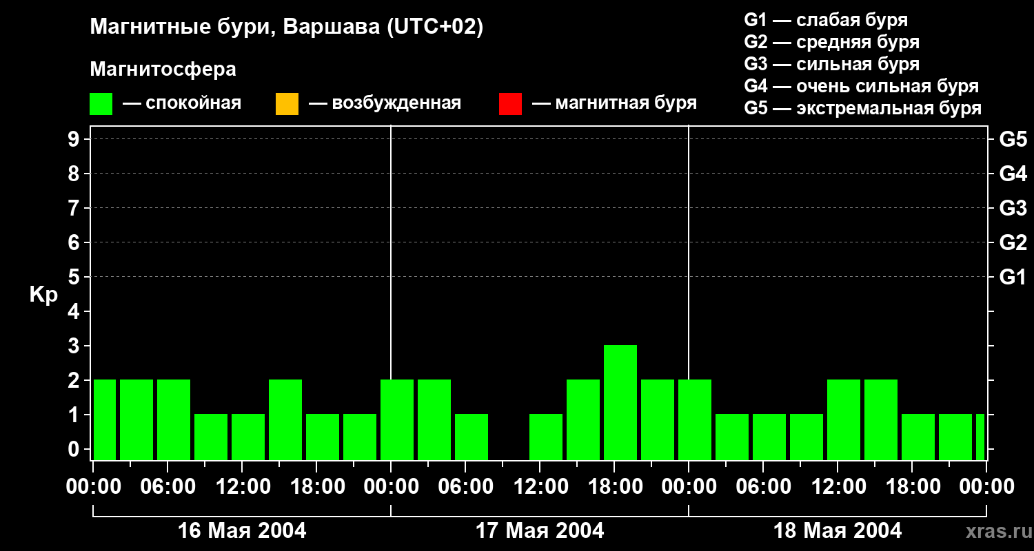 Магнитные бури в Варшаве — 18 мая 2004 года