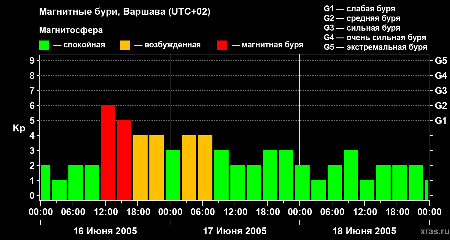 Магнитные бури в Варшаве — 18 июня 2005 года