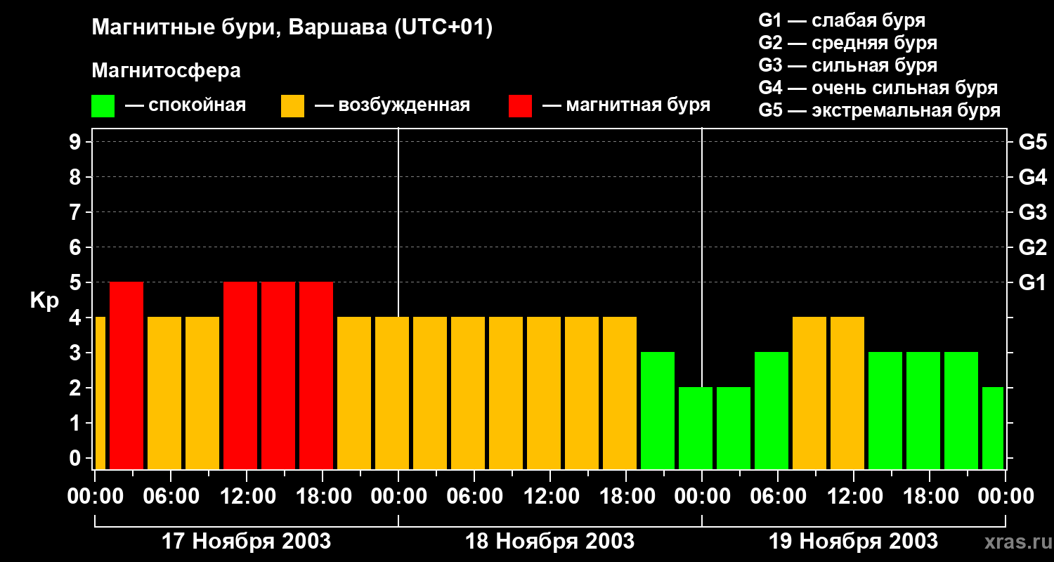 Магнитные бури в Варшаве — 19 ноября 2003 года