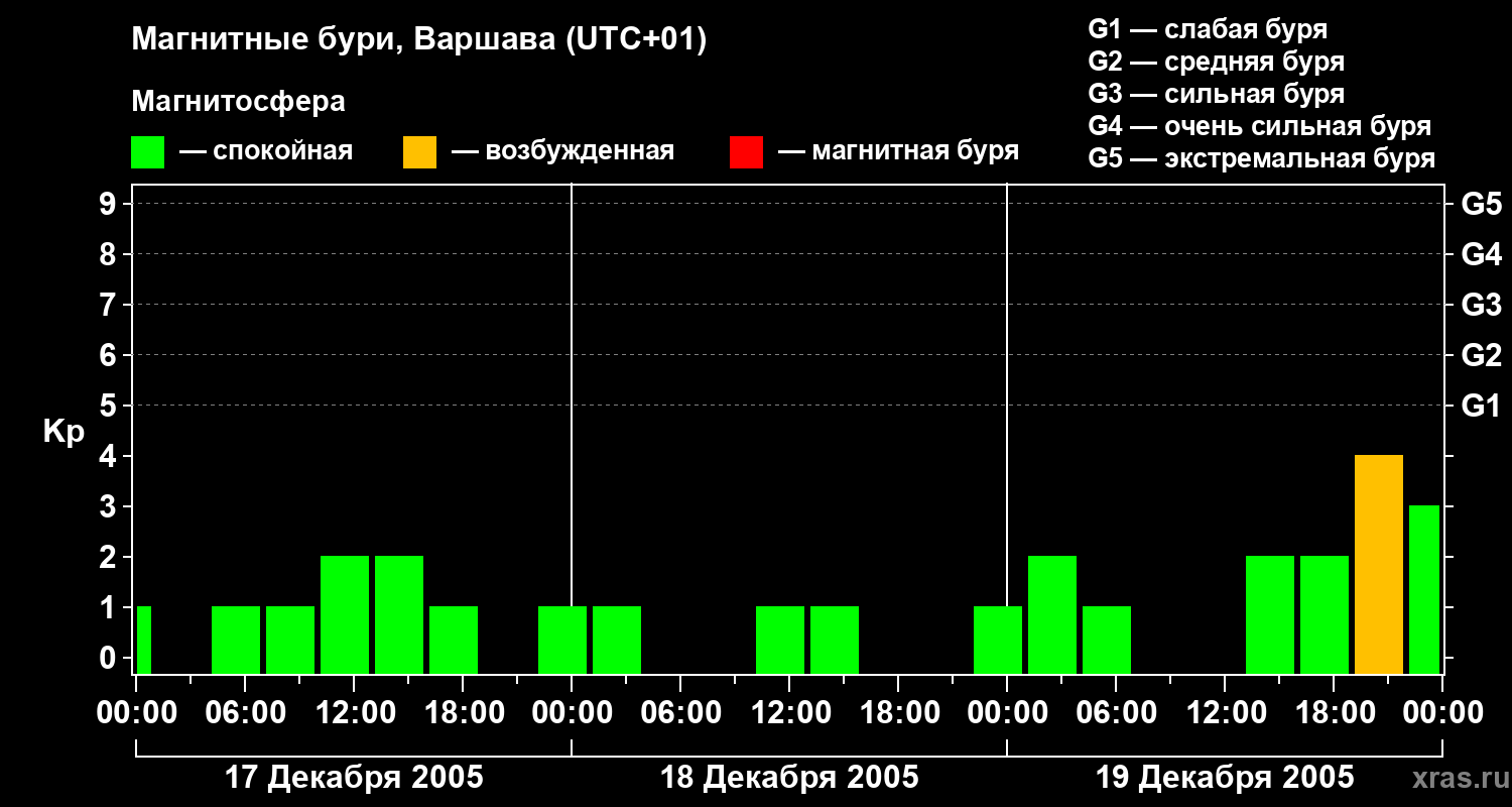 Магнитные бури в Варшаве — 19 декабря 2005 года