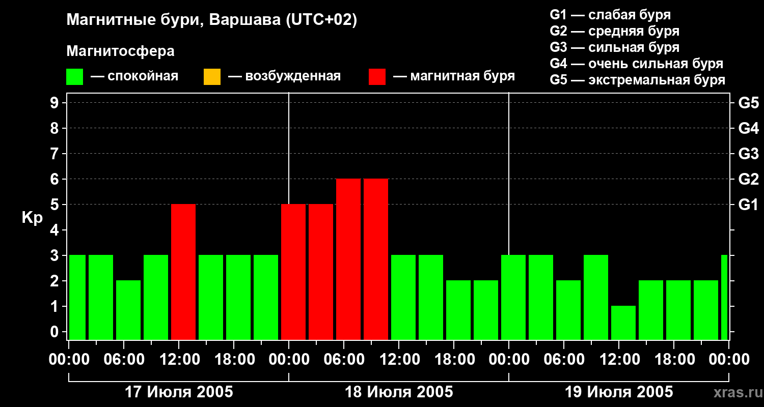 Магнитные бури в Варшаве — 19 июля 2005 года