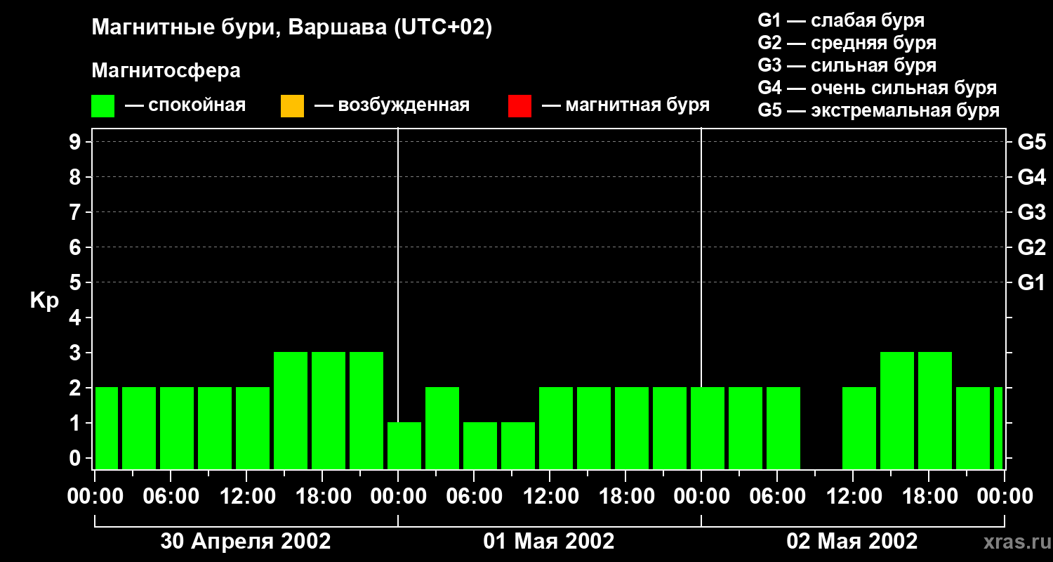Магнитные бури в Варшаве — 2 мая 2002 года