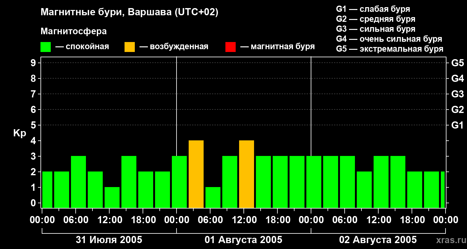 Магнитные бури в Варшаве — 2 августа 2005 года