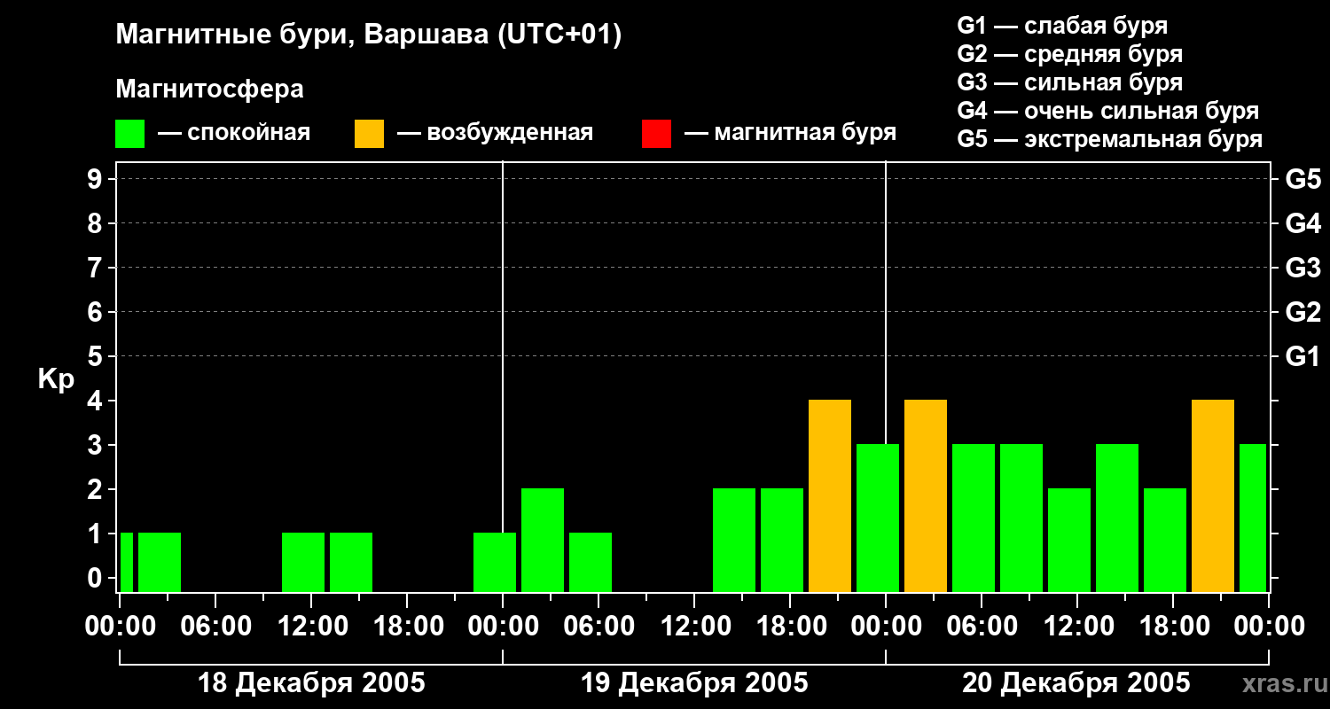 Магнитные бури в Варшаве — 20 декабря 2005 года