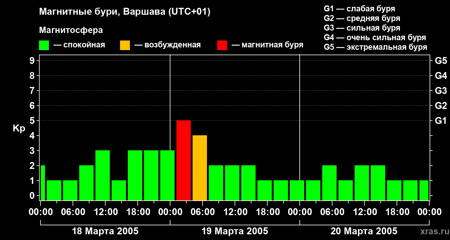 Магнитные бури в Варшаве — 20 марта 2005 года