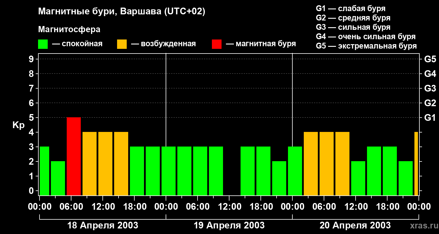 Магнитные бури в Варшаве — 20 апреля 2003 года