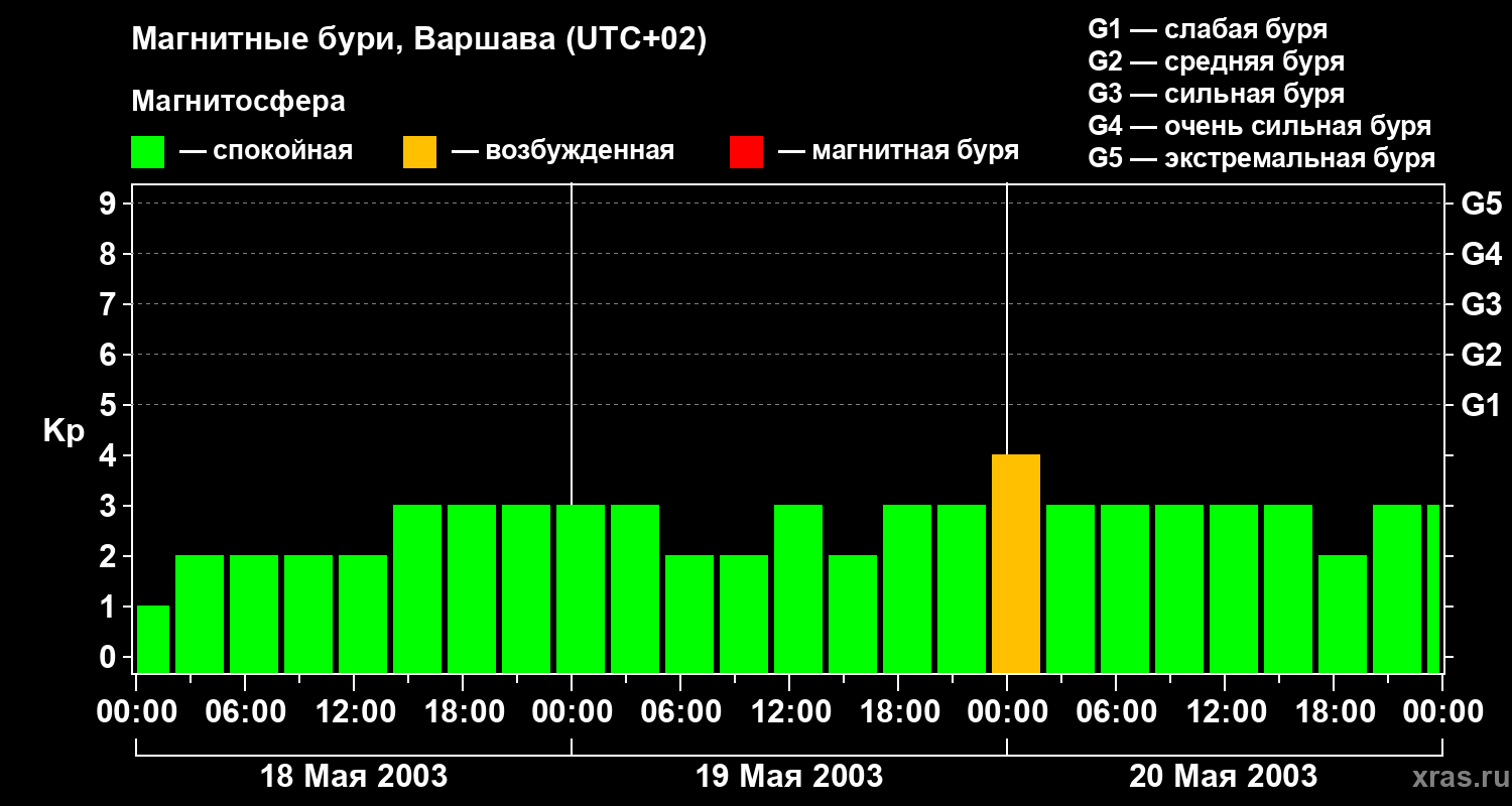 Магнитные бури в Варшаве — 20 мая 2003 года