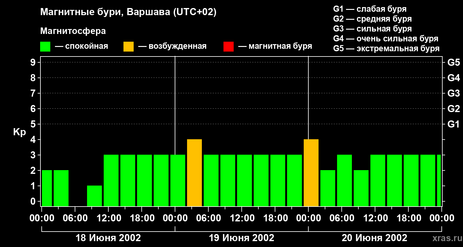 Магнитные бури в Варшаве — 20 июня 2002 года