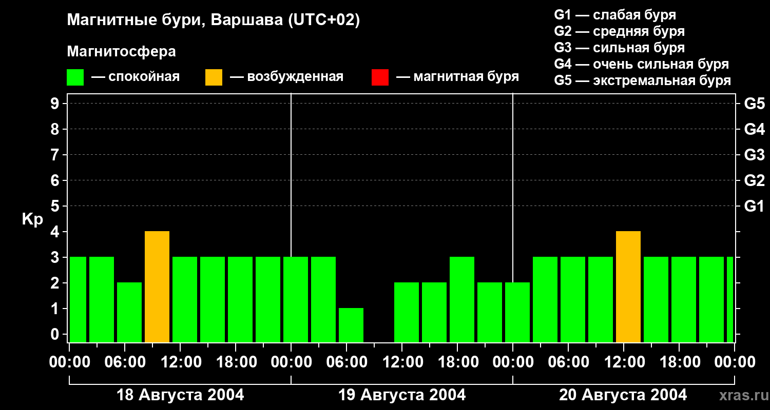 Магнитные бури в Варшаве — 20 августа 2004 года