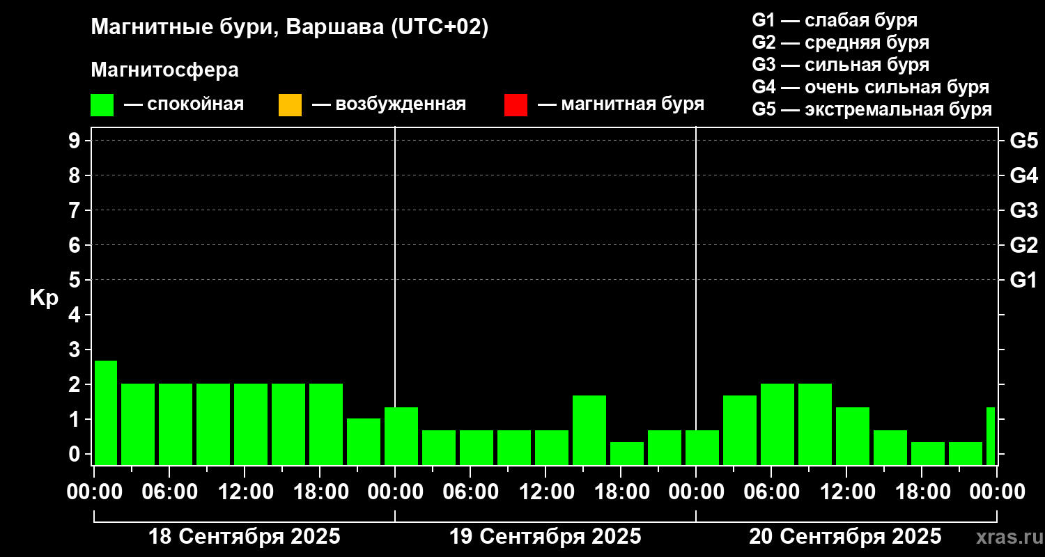 Магнитные бури в Варшаве 20 сентября 2025 года