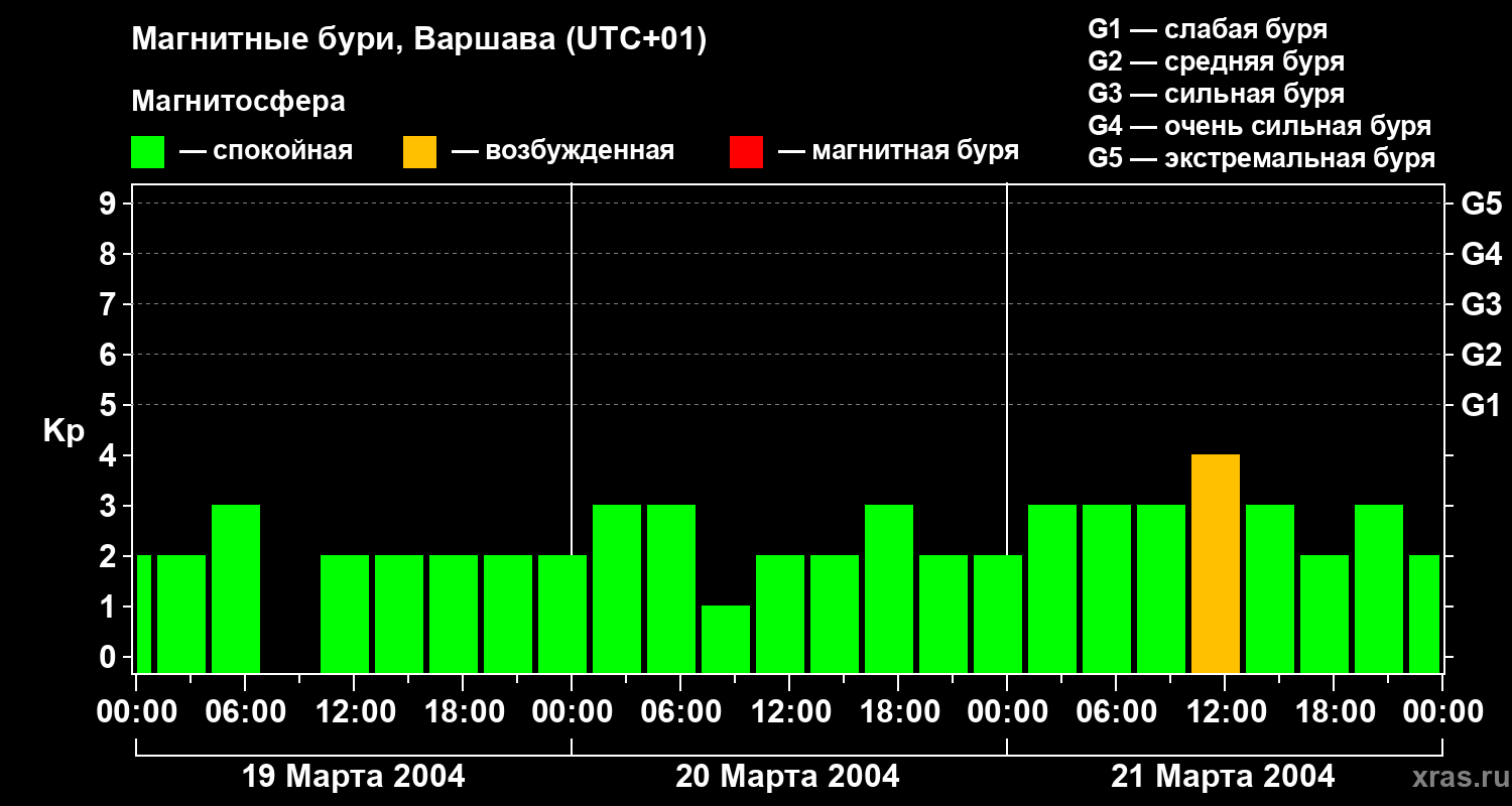 Магнитные бури в Варшаве — 21 марта 2004 года