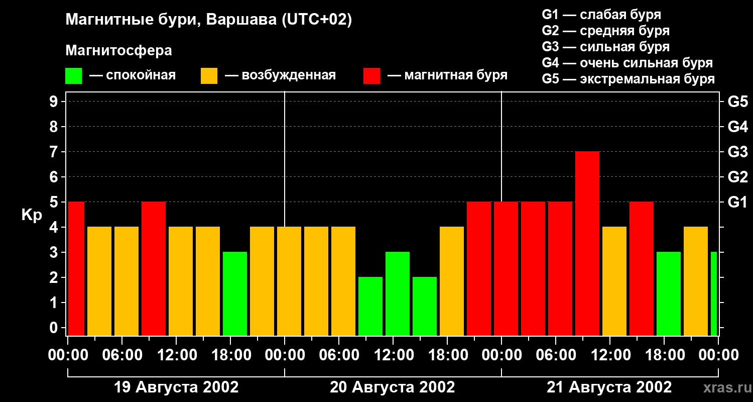 Магнитные бури в Варшаве — 21 августа 2002 года