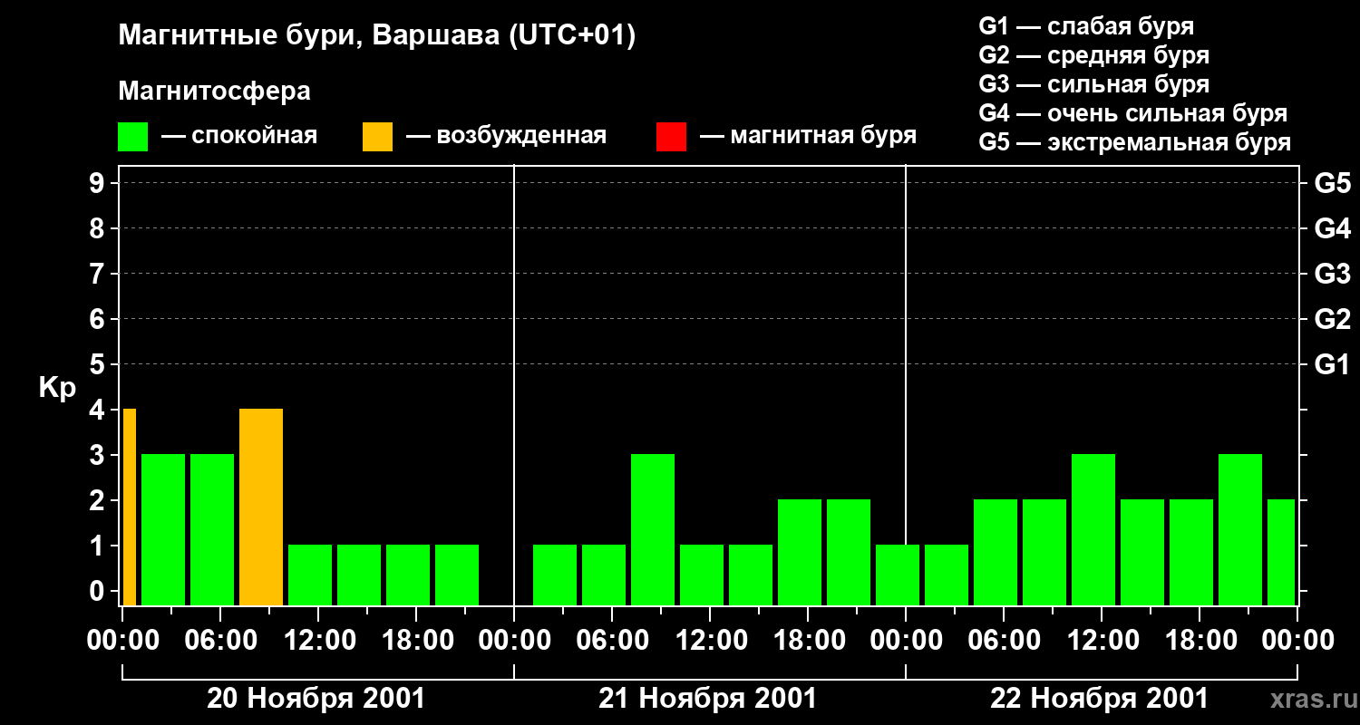 Магнитные бури в Варшаве — 22 ноября 2001 года