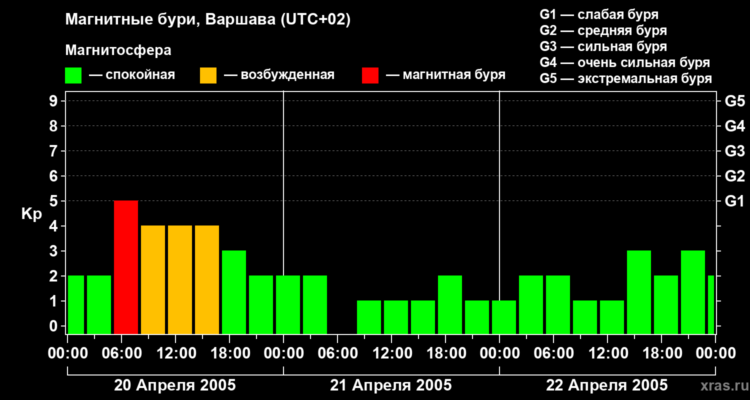 Магнитные бури в Варшаве — 22 апреля 2005 года