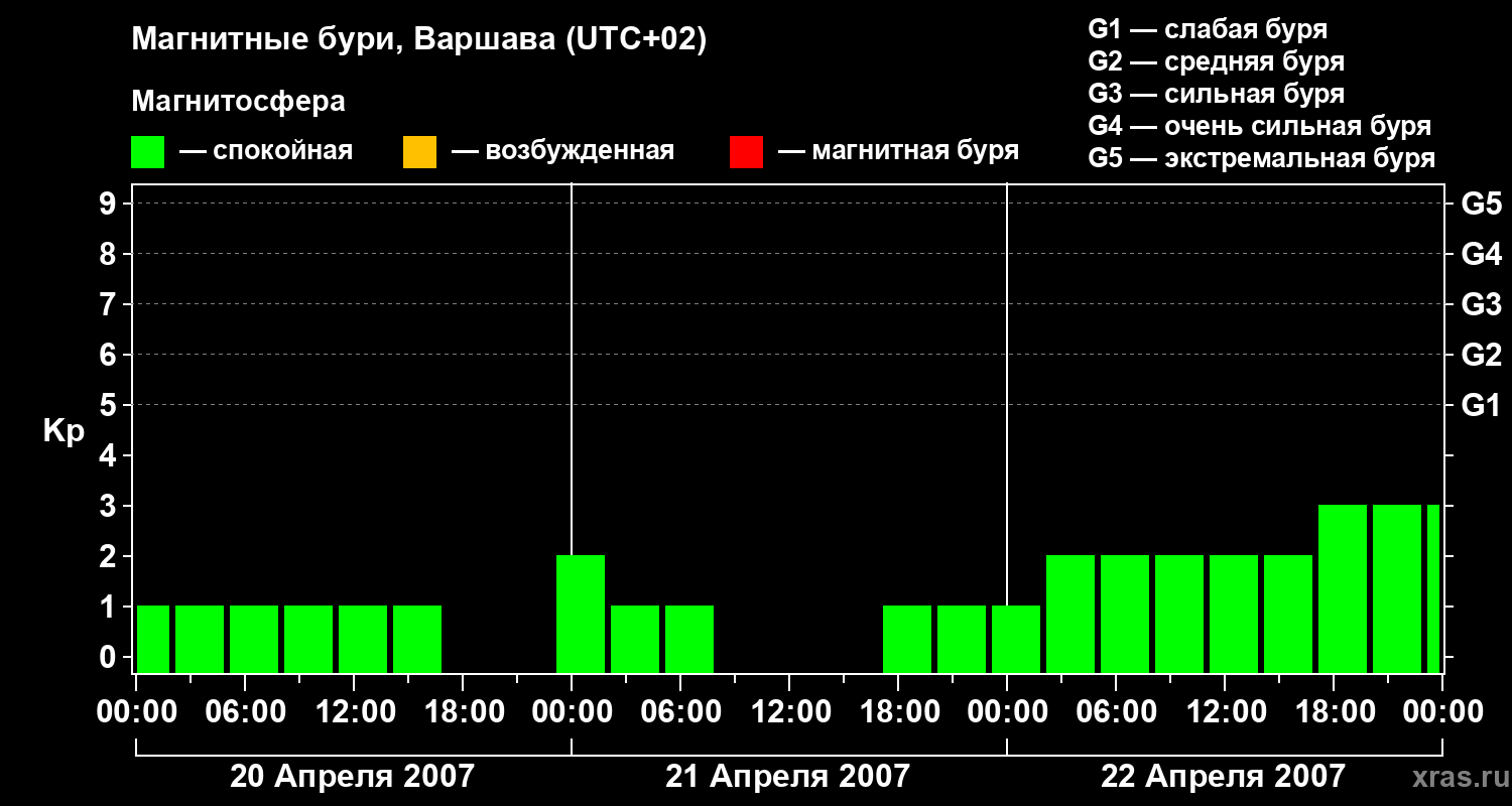 Магнитные бури в Варшаве — 22 апреля 2007 года