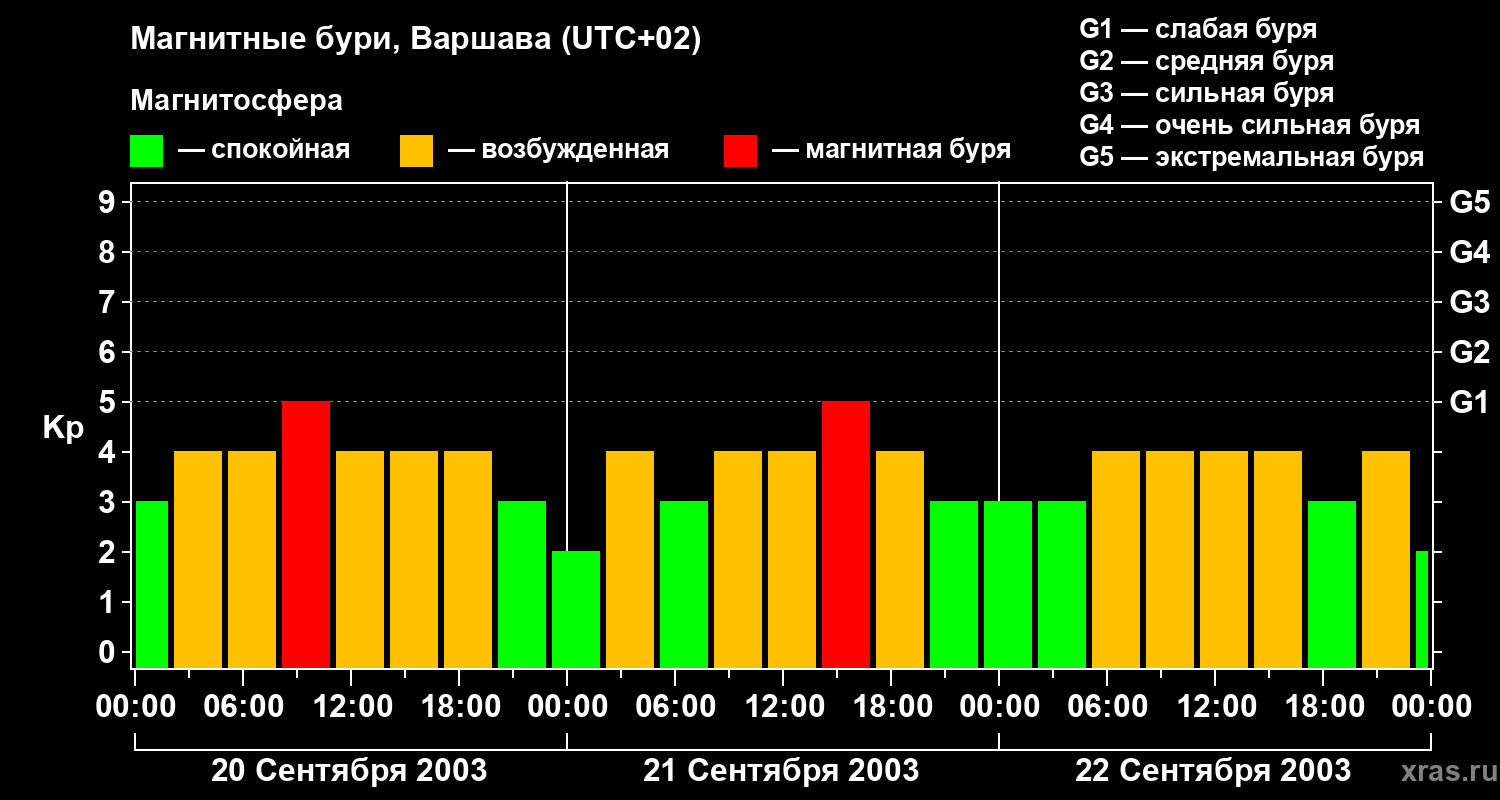 Магнитные бури в Варшаве — 22 сентября 2003 года