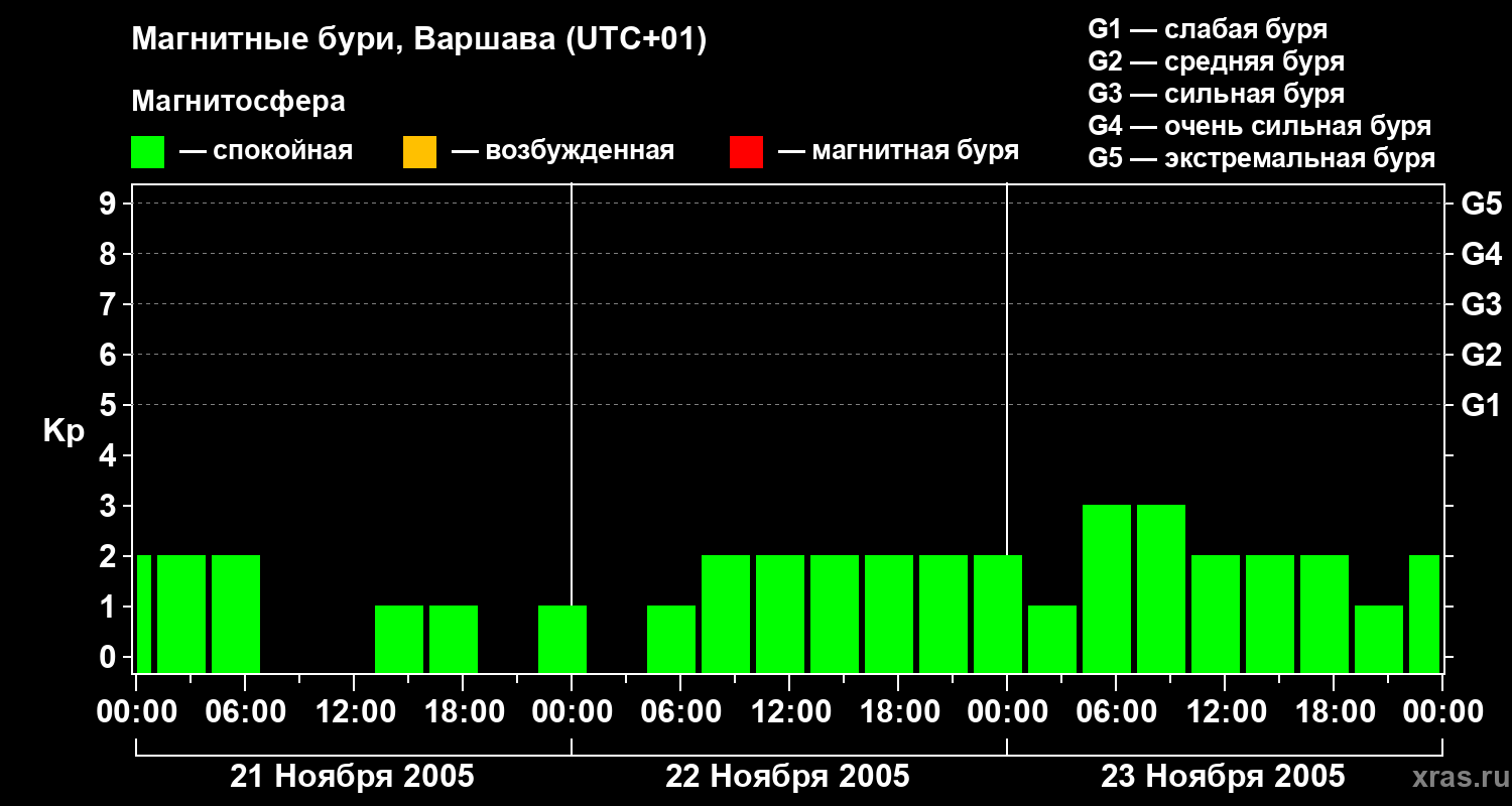 Магнитные бури в Варшаве — 23 ноября 2005 года