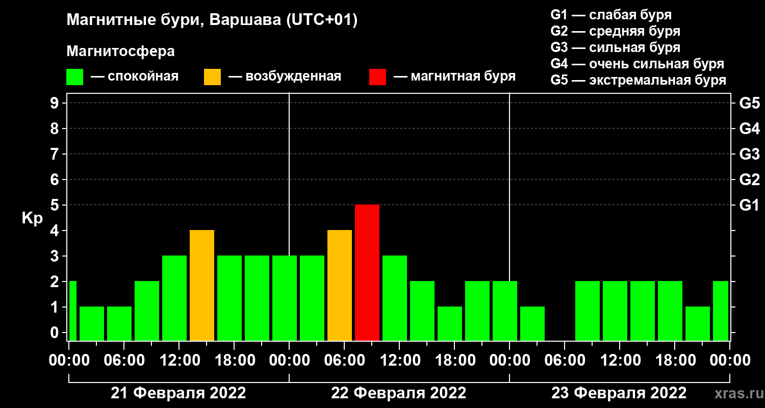 Магнитные бури в Варшаве — 23 февраля 2022 года
