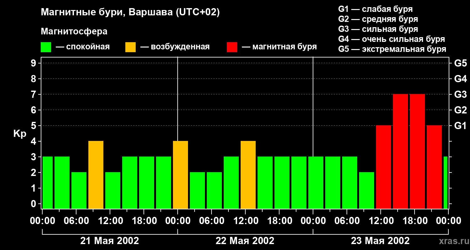 Магнитные бури в Варшаве — 23 мая 2002 года