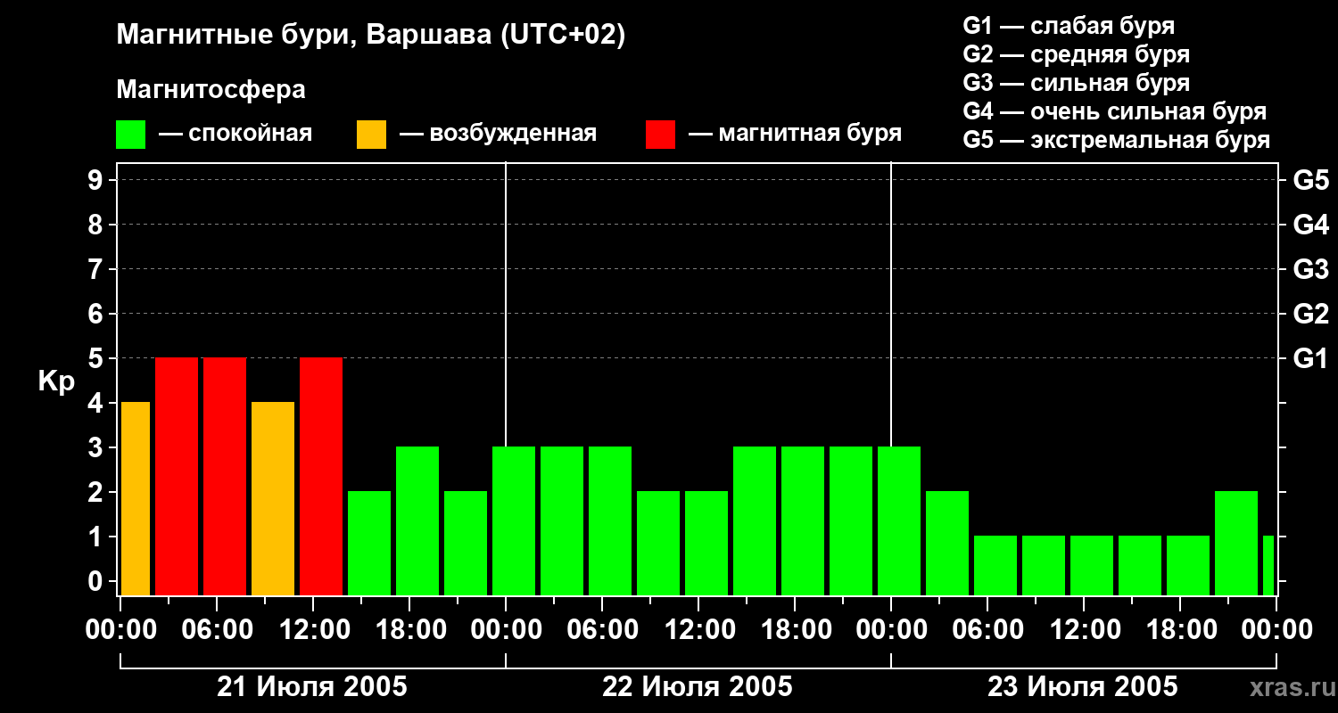 Магнитные бури в Варшаве — 23 июля 2005 года