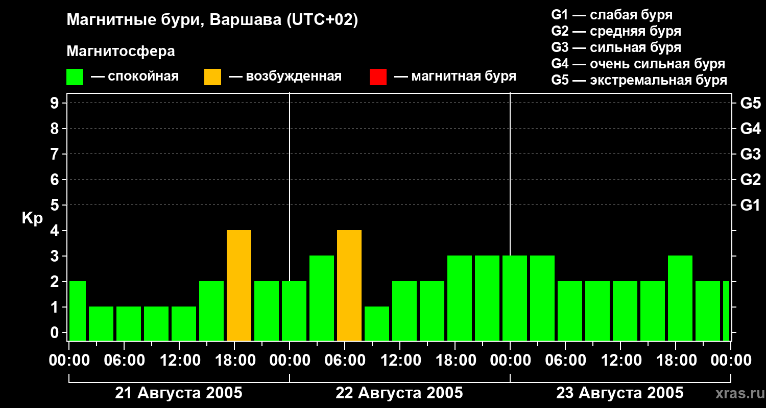 Магнитные бури в Варшаве — 23 августа 2005 года