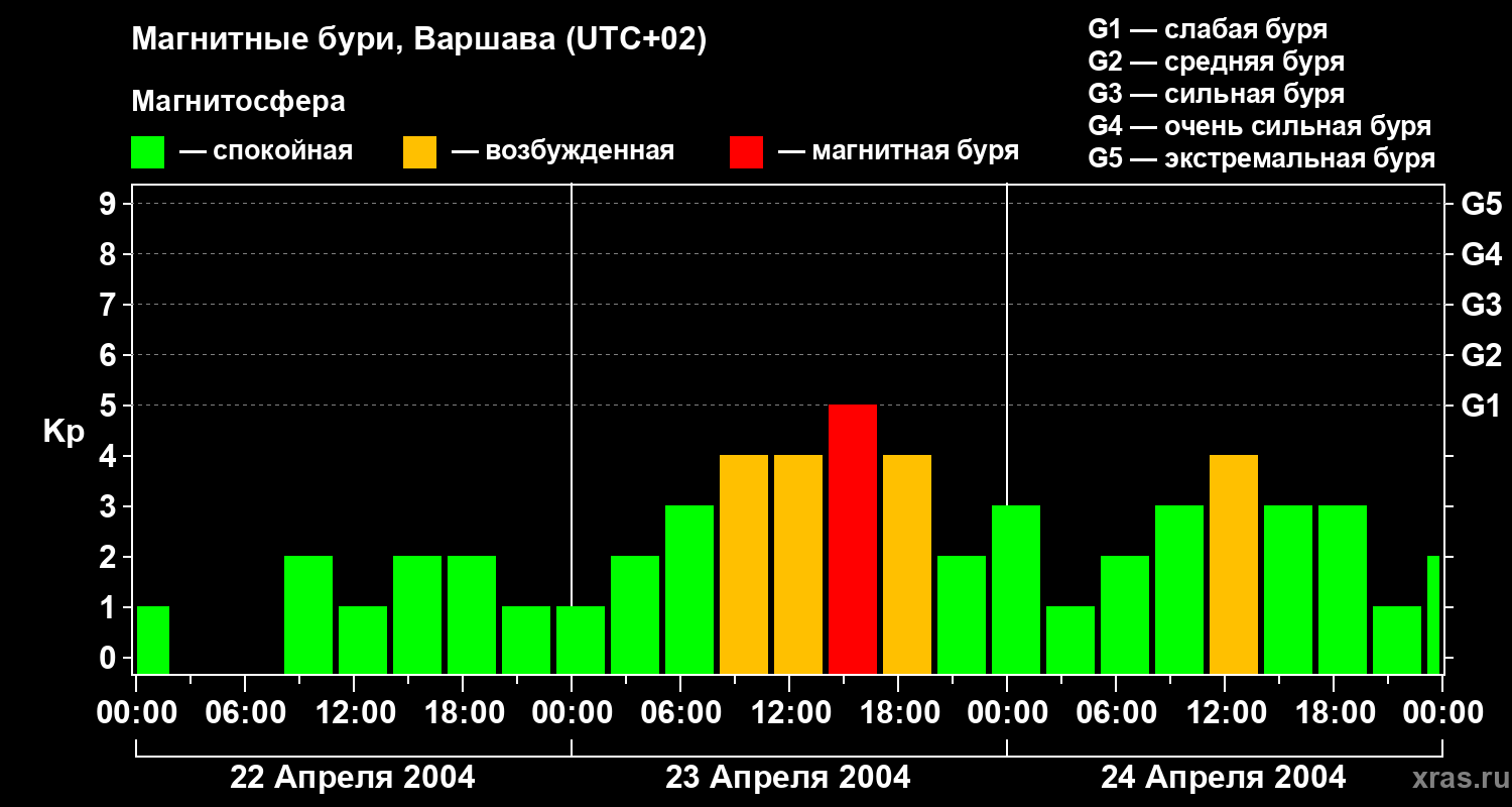 Магнитные бури в Варшаве — 24 апреля 2004 года