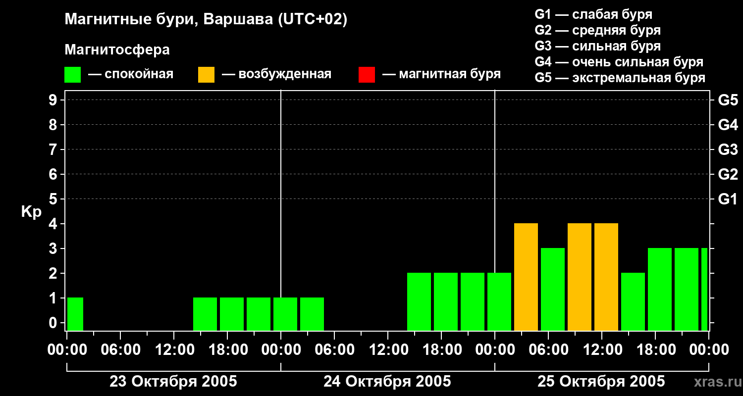 Магнитные бури в Варшаве — 25 октября 2005 года