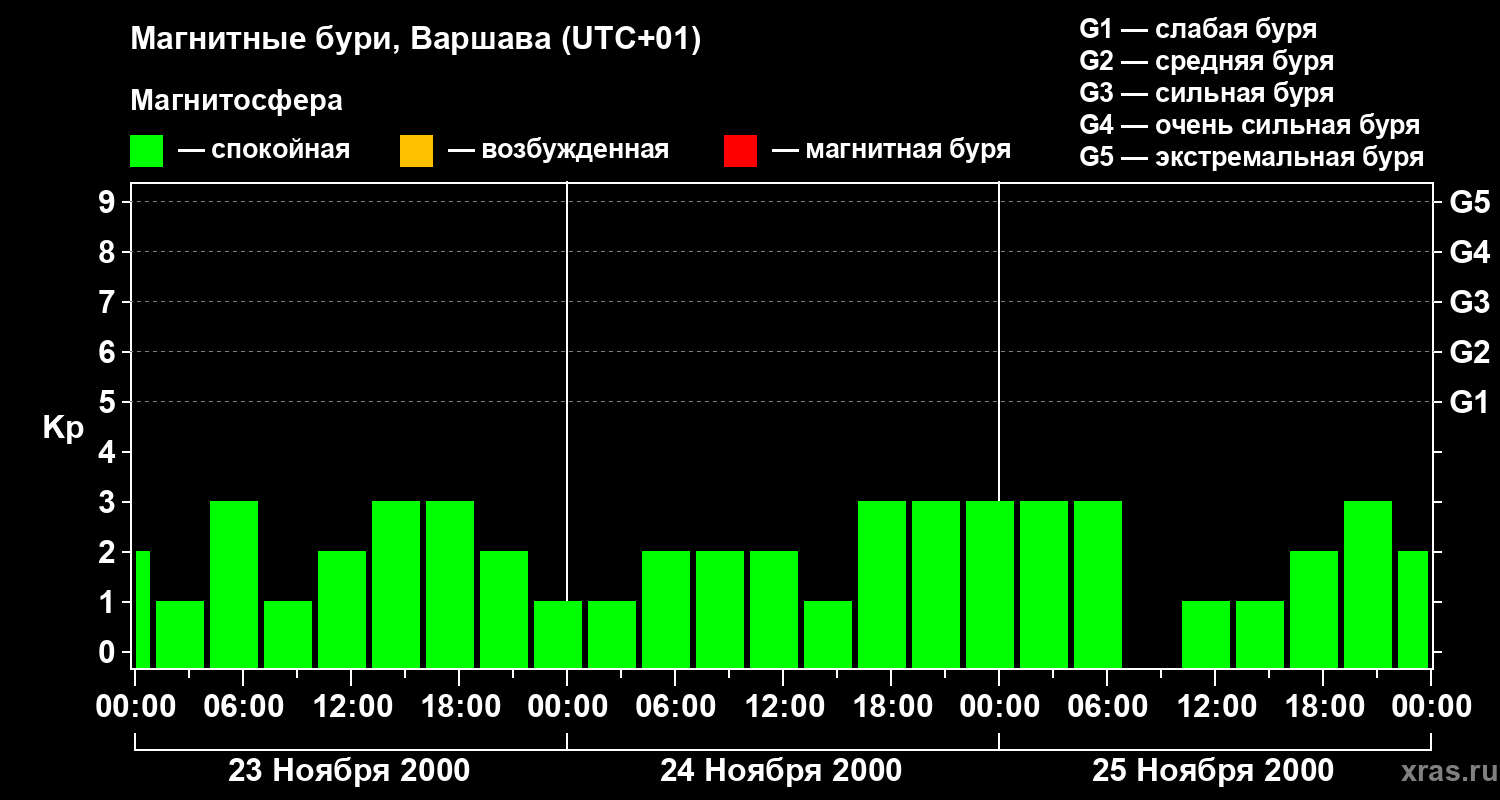 Магнитные бури в Варшаве — 25 ноября 2000 года